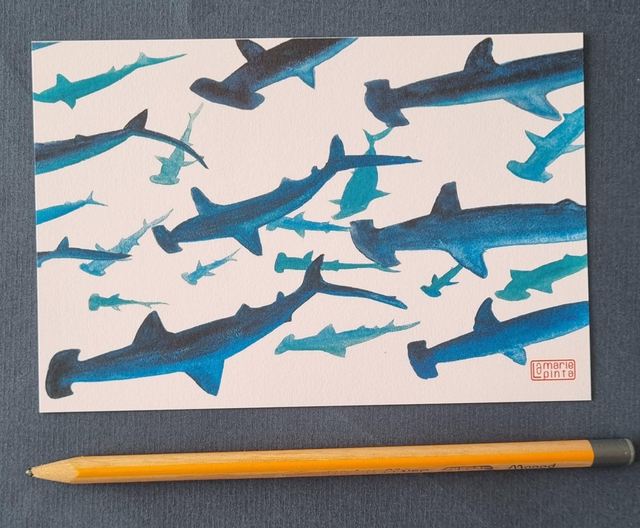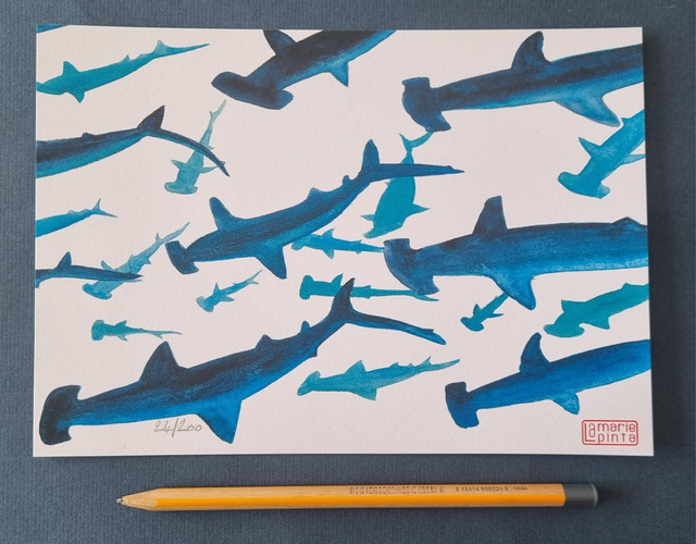 ​Plongez dans les profondeurs avec cette reproduction fidèle de mon aquarelle originale. Capturant l'allure unique et la présence énigmatique du Requin-Marteau, cette œuvre est une pièce forte qui évoque la force de la nature et le design fascinant de l'évolution.
